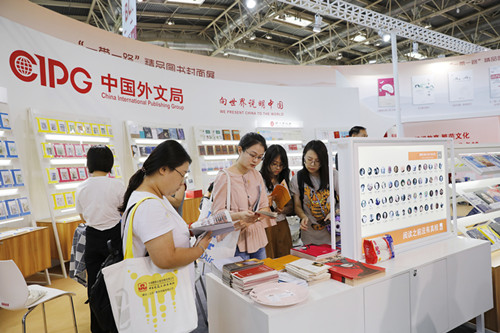 讀者在中國外文局展台翻閱圖書