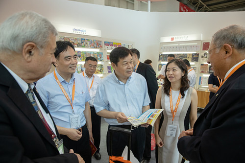 8月21日,中國外文局“對外出版70年精品圖書成果展”在第26屆北京國際圖書博覽會(BIBF)舉辦。中國外文局局長杜占元,副局長陸彩榮、高岸明、劉大為,局副總編輯陳實出席活動並為成果展揭幕。局屬出版單位和機關相關部室負責同誌參加。