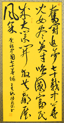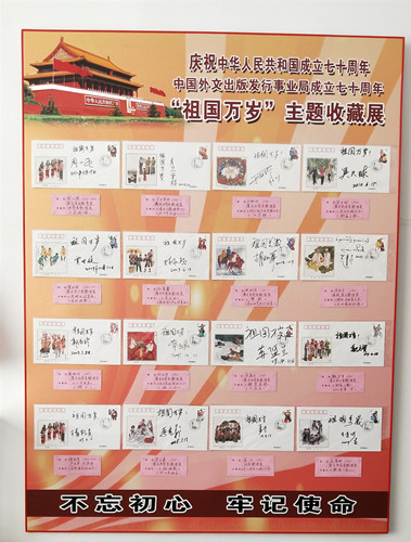 在zai選xuan擇ze祖zu國guo萬wan歲sui這zhe個ge專zhuan題ti的de時shi候hou,還hai要yao感gan謝xie著zhu名ming歌ge唱chang家jia王wang坤kun老lao師shi,我wo在zai讓rang他ta寫xie題ti字zi封feng的de時shi候hou,我wo並bing沒mei有you想xiang讓rang他ta寫xie什shen麼me,隻zhi是shi隨sui他ta所suo願yuan,寫xie個ge鼓gu勵li我wo的de話hua都dou可ke以yi。他ta說shuo你ni給gei我wo的de是shi慶qing祝zhu中zhong華hua人ren民min共gong和he國guo成cheng立li50周年的封,那我就寫祖國萬歲。