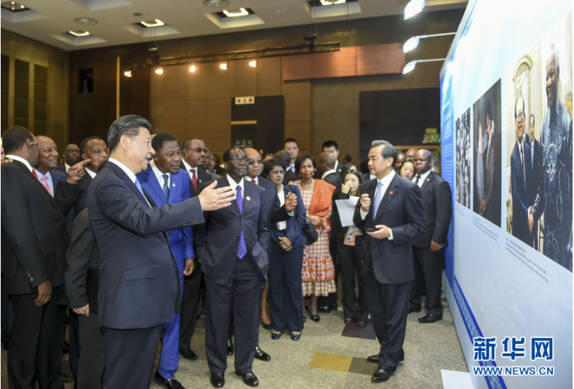 2015年12月4日,中國國家主席習近平與非洲國家領導人共同參觀由中國外交部主辦、中國外文局承辦的“中非合作論壇15周年成果圖片展”。(圖片來源:新華網)