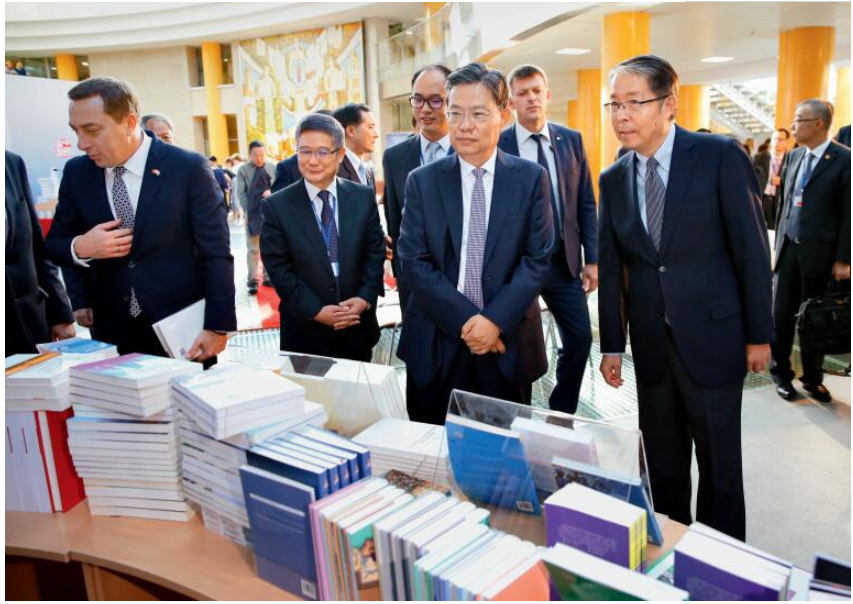2018年9月,趙樂際同誌出席中國外文局向白俄羅斯國家圖書館贈書儀式