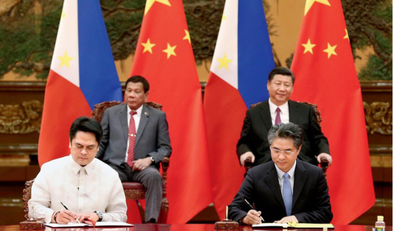 2017年5月15日,中國國家主席習近平和菲律賓總統杜特爾特共同見證中國外文局與菲律賓新聞部合作簽約