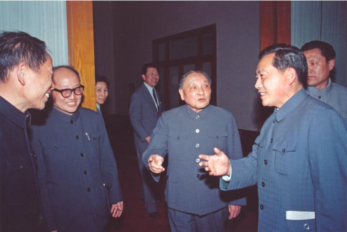1985年4月,鄧小平同誌在為外文局老專家愛潑斯坦慶祝70壽辰前,親切會見時任中國外文局局長範敬宜(右一)和時任《中國建設》(現《今日中國》)第一副總編輯張彥(左二)等