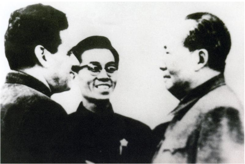 毛澤東主席曾多次接見國際書店(中國國際圖書貿易總公司前身)的國際同業。圖為1968年1月,毛主席接見烏拉圭新生書店經理維森特·羅維塔,國際書店拉美處孫式立(中)擔任翻譯