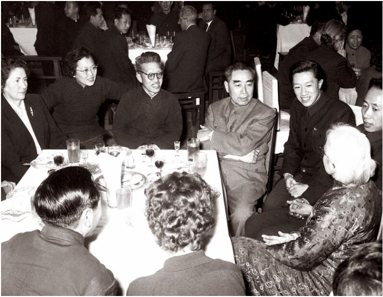 1963年3月5日,《北京周報》英文版創刊5周年慶祝會上,周恩來總理與工作人員親切交流