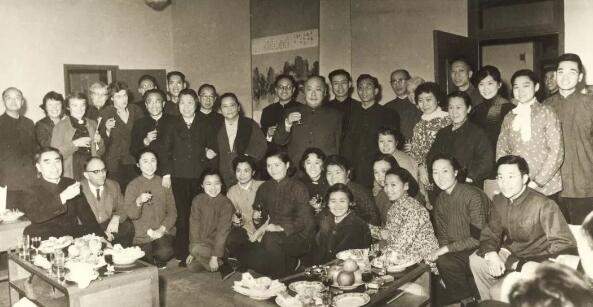 宋慶齡、周恩來、陳毅、鄧穎超與編輯部同仁合影,祝賀創刊10周年