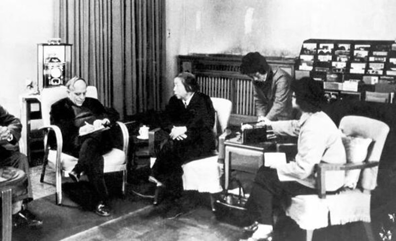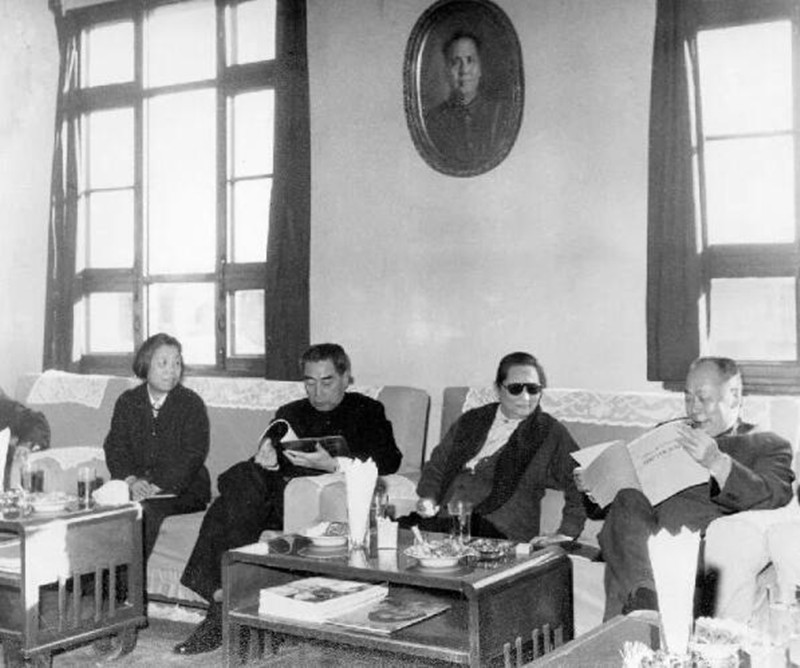 宋慶齡、周恩來、陳毅、鄧穎超翻閱《中國建設》10周年圖片集