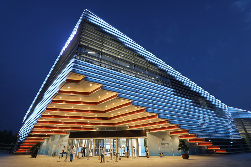 《夜色下的上合青島峰會新聞中心》今日中國喻捷 攝影