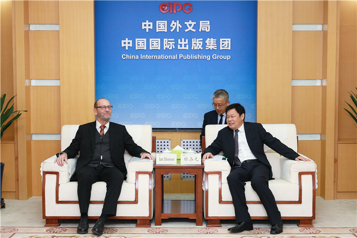 簽約儀式前,杜占元在外文局會見了伊恩•丹尼森。