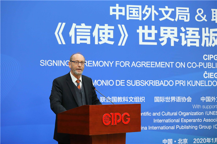 秦昌威在致辭中表示,4年前,在中國相關部門的支持和努力下,停刊5年的《信使》雜誌複刊,成為中國和教科文組織深化合作、開辟文明交流互鑒新領域的重要標誌。如今,《信使》雜誌世界語版落戶中國外文局,進一步拓展了中國和聯合國教科文組織的合作渠道,為進一步豐富雙方合作內涵注入了新動力。