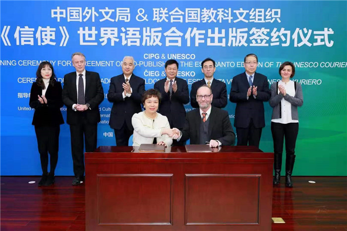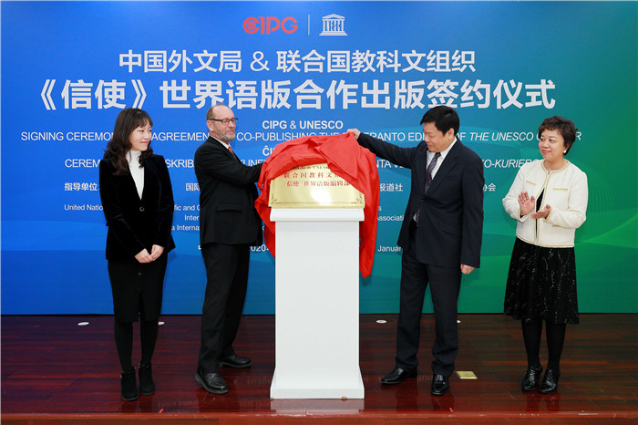 1月7日,聯合國教科文組織旗艦雜誌——《信使》世界語版翻譯出版簽約儀式在北京舉行。