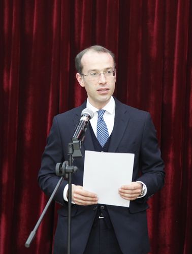 莊艾德(Hélder Carvalho Joana)代表葡萄牙駐華大使杜傲傑(José Augusto Duarte)致zhi辭ci,他ta指zhi出chu,葡pu萄tao牙ya語yu在zai世shi界jie範fan圍wei內nei使shi用yong人ren數shu眾zhong多duo,在zai中zhong國guo也ye有you越yue來lai越yue多duo的de學xue習xi者zhe。推tui出chu葡pu萄tao牙ya語yu翻fan譯yi資zi格ge考kao試shi意yi義yi重zhong大da,將jiang在zai拉la近jin中zhong國guo和he葡pu萄tao牙ya語yu國guo家jia人ren民min之zhi間jian的de距ju離li、深化人文交流等方麵發揮積極作用。