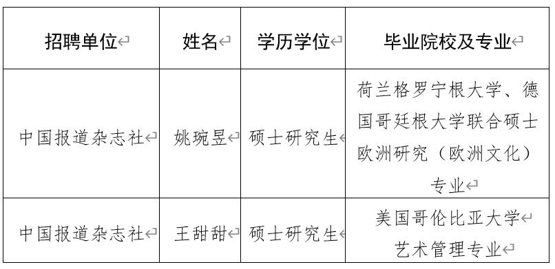 根據有關規定和《中國外文出版發行事業局所屬企事業單位2021年海外留學生招聘簡章》,現將中國外文局中國報道雜誌社2021年度擬接收海外留學生予以公示。公示期間,如有問題,請向中國外文局反映。