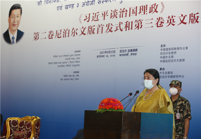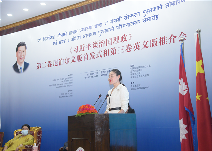 9月23日,《習近平談治國理政》第二卷尼泊爾文版首發式和第三卷英文版推介會在尼泊爾首都加德滿都舉行。此次活動由中國國務院新聞辦公室、尼泊爾總統府、中國外文局、中國駐尼泊爾大使館共同主辦。