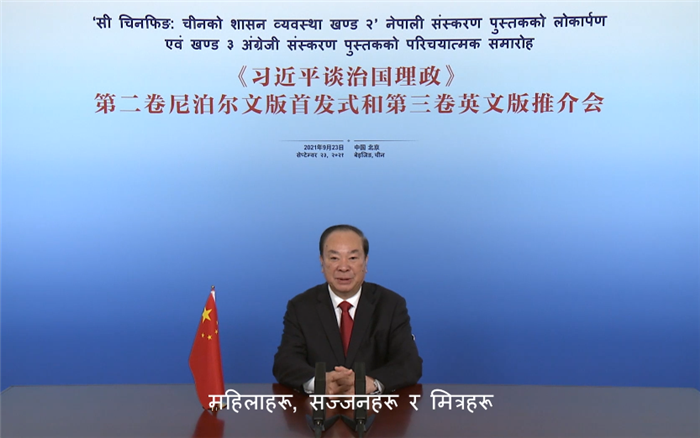 尼泊爾總統班達裏出席活動並致辭,中共中央政治局委員、中宣部部長黃坤明,中國外文局局長杜占元分別發表視頻致辭。中國駐尼泊爾大使侯豔琪、尼泊爾中國研究中心執行主席巴特拉伊等各界人士參加了當天活動。