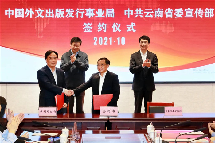 10月9日,中國外文局與雲南省委宣傳部戰略合作簽約儀式在雲南省大理州舉行。中國外文局局長杜占元,雲南省委常委、宣傳部部長趙金出席儀式並致辭。中國外文局副局長陸彩榮,中國外文局副總編輯陳實及雙方有關負責同誌出席。