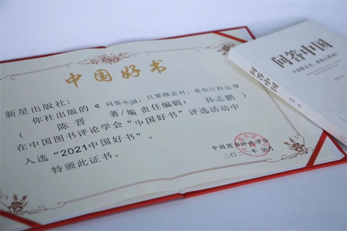 在第27個世界讀書日之際,在中宣部指導下,中國圖書評論學會組織專家評選出了“2021年度中國好書”,中國外文局所屬新星出版社出版的“人民中國”叢書總論卷《問答中國:隻要路走對,誰怕行程遠?》入選。這是中國外文局圖書第五次榮獲“中國好書”殊榮,此前,《習近平談治國理政》、《習近平談治國理政》第二卷和《習近平談治國理政》第三卷分別獲評“年度榮譽圖書”另有《擁抱》入選。
