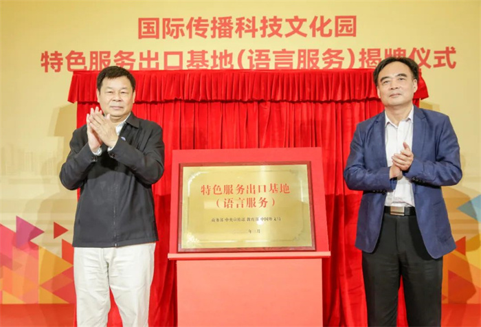 杜占元、陸彩榮為特色服務出口基地(語言服務)揭牌