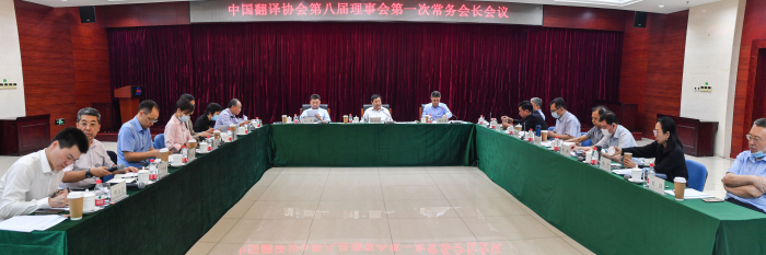 9月29日,中國翻譯協會第八屆理事會第一次常務會長會議在北京舉行。中國外文局局長、中國翻譯協會會長杜占元主持會議並講話,中國外文局副局長兼總編輯、常務副會長兼秘書長高岸明出席會議並作工作報告,常務副會長黃友義、王剛毅、王文、徐愛波、史國輝、劉宏、王璐、董洪川、孫有中、黃鬆等出席會議並交流發言,中國外文局副局長、全國翻譯專業學位研究生教育指導委員會主任委員於濤,中國翻譯協會相關領導等列席會議。