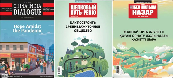 《中印對話》(英文版)、《絲路瞭望》(俄文版、哈薩克文版)
