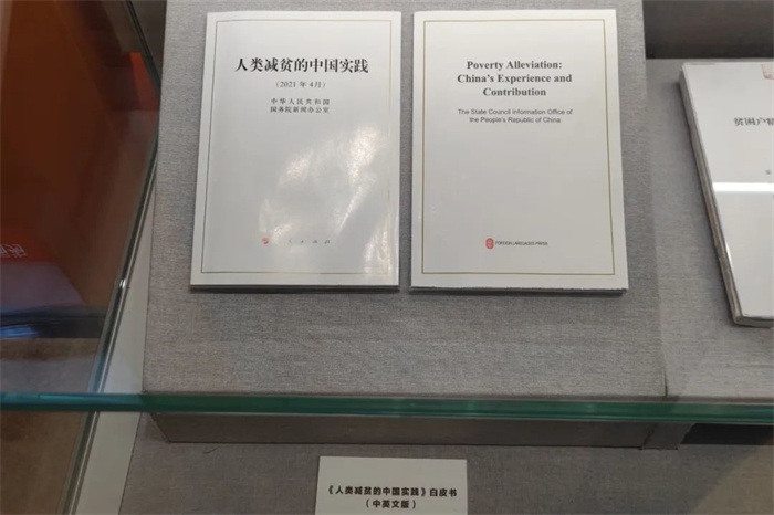 在第六單元“全麵推進社會建設不斷滿足人民美好生活向往”和第七單元“堅持人與自然和諧共生美麗中國建設邁出重大步伐”展區中,外文出版社出版的多語種政府白皮書也在顯著位置陳列。
