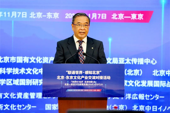 11月7日,由北京市國有文化資產管理中心和中國外文局亞太傳播中心共同主辦的“聯通世界·感知北京”北京—東京文化產業交流對接活動在京舉行。中國外文局副局長兼總編輯高岸明發表視頻致辭。商務部亞洲司原司長、中國駐日本大使館原經濟商務公使呂克儉,日本動畫協會理事長、日本手塚株式會社社長鬆穀孝征等嘉賓與會,中日相關部門及機構負責人、中日商協會代表、文化產業園區、孵化器、投融資機構代表及中外企業家、媒體代表等約200人通過線上線下相結合的方式參加了本次活動。