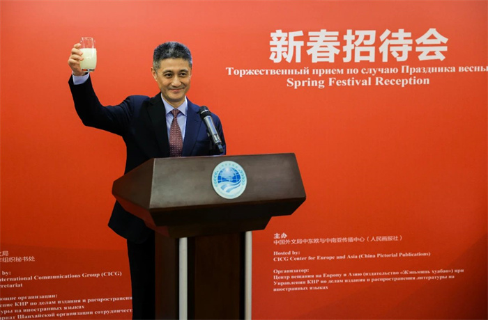 1月13日,上合組織國家駐華使節新春招待會在京舉辦。本次活動由中國外文局、上海合作組織秘書處指導,中國外文局中東歐與中南亞傳播中心(人民畫報社)主辦,中國—上海合作組織地方經貿合作示範區管理委員會支持。中國外文局局長杜占元、上合組織秘書長張明出席招待會。