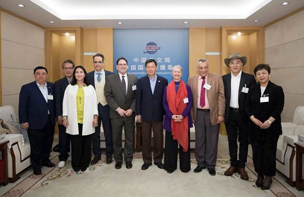 4月25日,中國外文局局長、首屆蘭花獎評委會主任委員杜占元會見到訪的蘭花獎外籍評委一行。中國外文局副總編輯、國際傳播發展中心主任、首屆蘭花獎評委會秘書長陳實出席會見。
