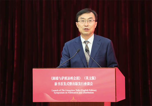 5月19日下午,由中國外文局所屬外文出版社與甘肅民族出版社聯合出版的《闊端與薩班涼州會談》(英文版)新書首發式暨出版發行座談會在北京舉行。中國外文局副局長陸彩榮,讀者出版集團黨委書記、董事長梁朝陽等領導及專家參加並為新書揭幕。