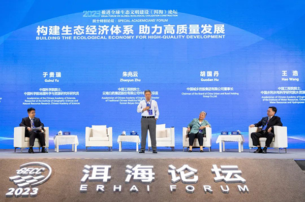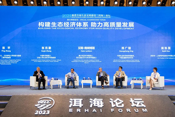 5月28日,2023推進全球生態文明建設(洱海)論壇院士特別論壇在雲南大理舉行。來自特色農業、生態經濟等相關領域的院士、專家學者、領軍人物等圍繞“打造生態經濟體係的產業基石”“高值產業的生態化發展”兩個議題展開交流,共同探討如何緊抓“生態經濟體係”“高質量發展”兩個關鍵詞,構建人與自然和諧共生的中國式現代化,展示豐富多彩、生動立體的生態中國形象,通過“院士力量”為生態經濟助力高質量發展建言獻策。