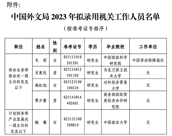 附件:中國外文局2023年擬錄用機關工作人員名單
