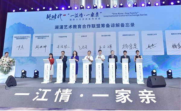 開kai幕mu式shi上shang,中zhong國guo外wai文wen局ju亞ya太tai傳chuan播bo中zhong心xin與yu雲yun南nan省sheng南nan亞ya東dong南nan亞ya區qu域yu國guo際ji傳chuan播bo中zhong心xin簽qian署shu了le戰zhan略lve合he作zuo協xie議yi,中zhong國guo外wai文wen局ju所suo屬shu中zhong國guo對dui外wai書shu刊kan出chu版ban發fa行xing中zhong心xin(國際傳播發展中心)與雲南省南亞東南亞區域國際傳播中心、中央美術學院、雲南大學、四川美術學院、泰國那空拍儂大學、老撾國立大學、緬甸東方學校等單位簽署了《瀾湄藝術教育合作聯盟籌備諒解備忘錄》。