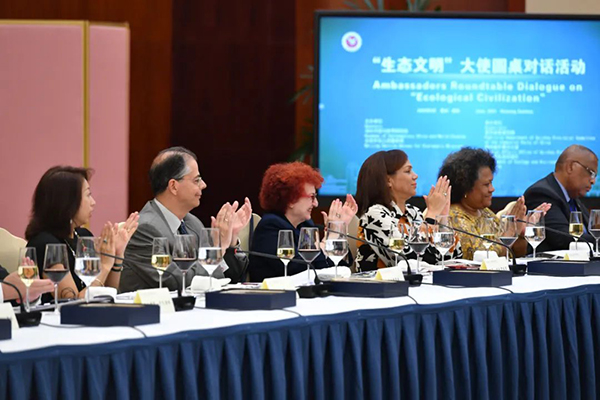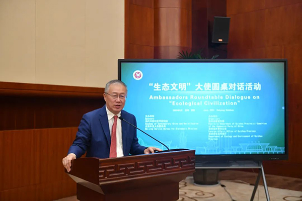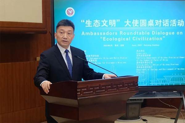 6月6日,“生態文明”大使圓桌對話活動在貴州舉行,中國外文局副局長於濤、北京外交人員服務局局長李立出席活動並致辭。貴州省副省長張敬平,科技部原副部長劉燕華,國家氣候變化專家委員會副主任、第十四屆全國人大常委會委員王毅及來自20個國家的駐華使節、國際組織代表出席並圍繞“現代化進程與生態文明建設”主題進行研討交流。