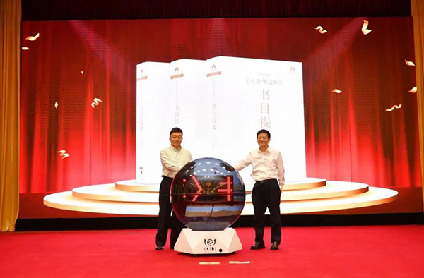 開幕式上,與會專家學者共同見證《漢英對照〈大中華文庫〉書目提要》新書發布,於濤、蔣洪新共同為新書揭幕。