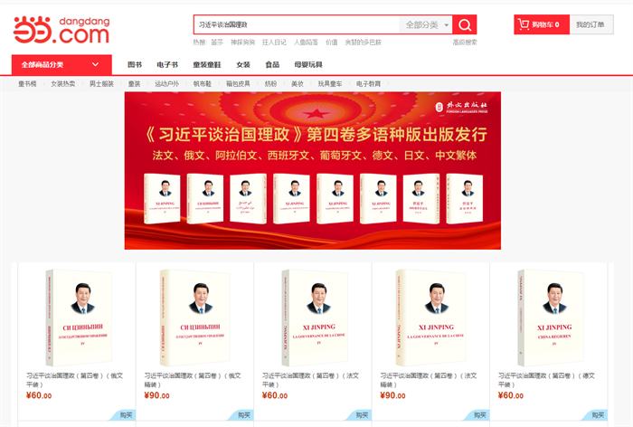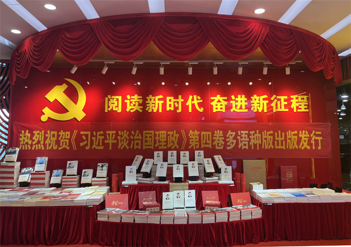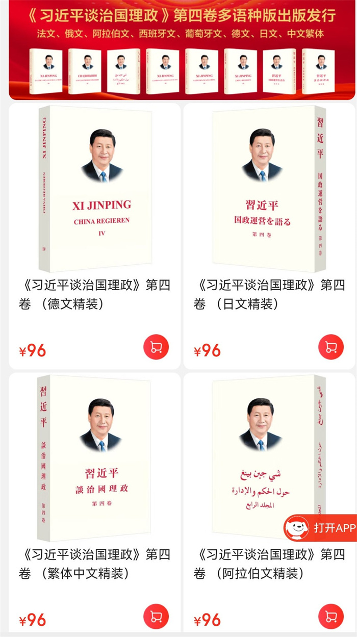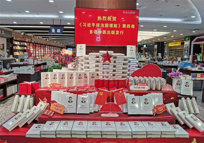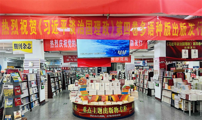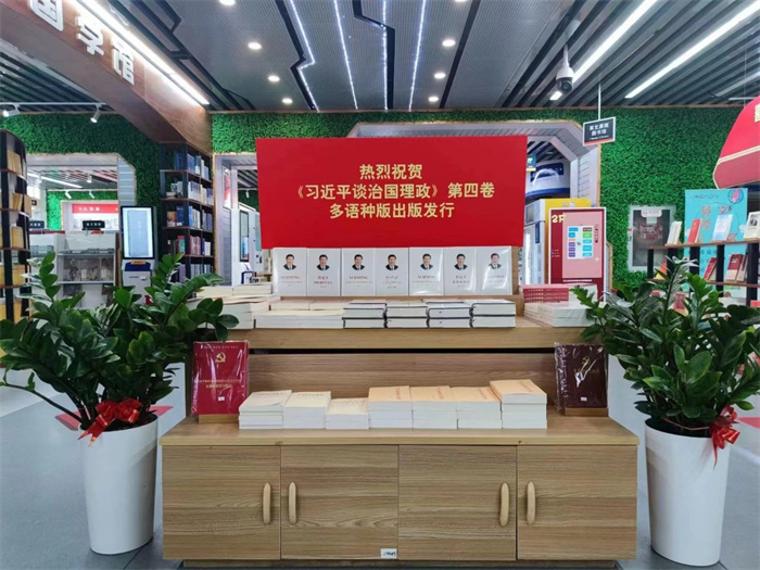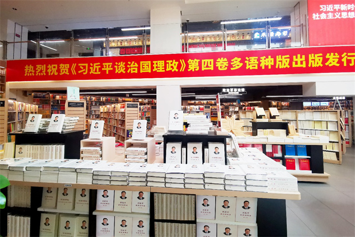 6月11日正式出版發布後,《習近平談治國理政》第四卷多語種版已在全國各大中心書城和網站上架銷售,以下為各地主要書城和網站重點銷售展陳的場麵。