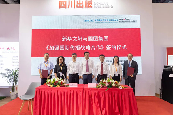 6月15日,中國外文局所屬中國國際圖書貿易集團公司(簡稱“國圖集團”)與新華文軒簽署了《加強國際傳播戰略合作協議》,未來將充分發揮各自優勢,把握時代大勢,全麵助力文化“走出去”,hezuofazhangongchuangshuangying。zhongxuanbujinchukouguanlijufujuchangzhaohaiyun,zhongguowaiwenjufujuchangliudawei,zhonggongsichuanshengweixuanchuanbufubuchangzhouqingyijixiangguandanweidaibiao40餘人出席活動。