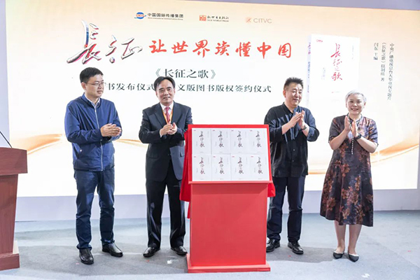 閆東、張嘯代表中央廣播電視總台、中國國際電視總公司向中國外文局、新世界出版社贈送了專題片《長征之歌》音像製品,陸彩榮代表中國外文局向專題片《長征之歌》主創團隊贈送圖書。新世界出版社與韓國耕智出版社簽訂了《長征之歌》韓文版圖書合作出版合同。
