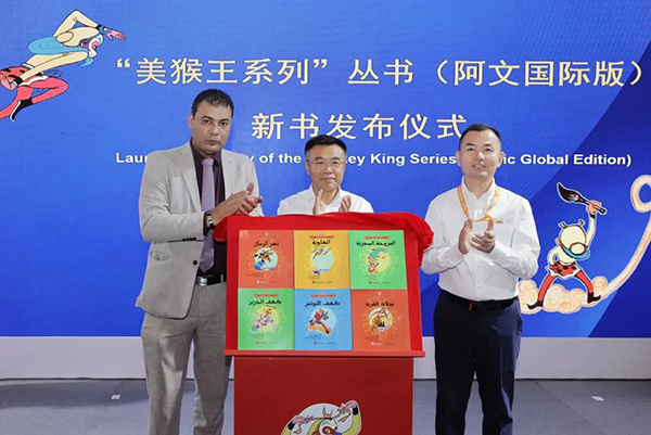6月16日,朝華—埃及希克邁特中國主題圖書海外編輯部成立簽約儀式暨“美猴王係列”叢書(阿文國際版)發布會舉辦。與會嘉賓分別圍繞“美猴王係列”叢書(阿文國際版)在埃及出版曆程與心得,中華文化經典阿文譯介實踐與創新,企業引領融通各方資源、推動文化交往作主題發言。