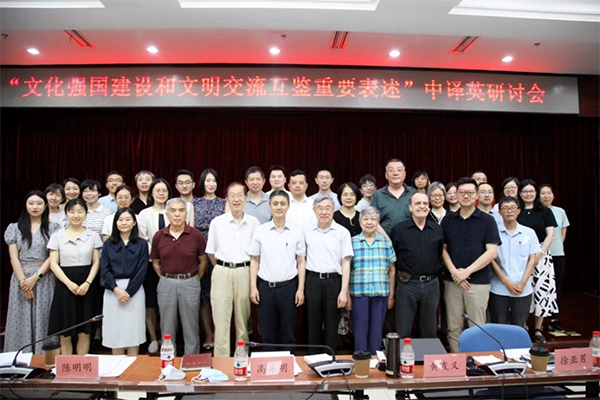 6月28日,由中國翻譯協會主辦、中國外文局翻譯院承辦的“文化強國建設和文明交流互鑒重要表述”中譯英研討會在京舉行。中國外文局副局長兼總編輯、中國翻譯協會常務副會長兼秘書長高岸明出席會議並致辭,中國翻譯協會常務副會長、中國外文局原副局長兼總編輯黃友義主持研討交流。