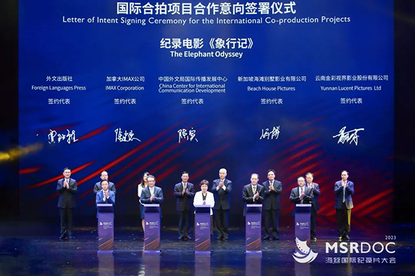 在開幕式上,加拿大IMAX公司、柬埔寨國家電視台、新加坡海灘別墅影業有限公司、新加坡IFA MEDIA製作公司、美國國家地理頻道、埃及國家電視台簽約代表分別和中國外文局所屬中國對外書刊出版發行中心(國際傳播發展中心)、福建省廣播影視集團、廣西廣播電視台等機構簽署了紀錄電影《象行記》和紀錄片《跨越時空的北京中軸線》《海絲雙城記》《永恒的朋友》《田野之上》(國際版)等五部國際合拍影視項目意向合作協議,主題涵蓋中國文化、經濟、生態等多個領域。