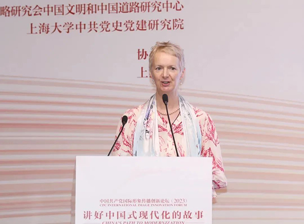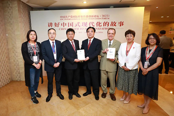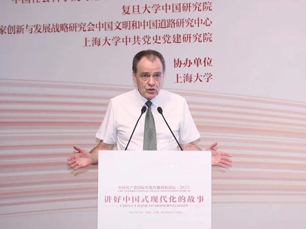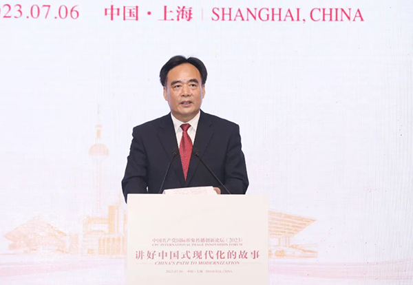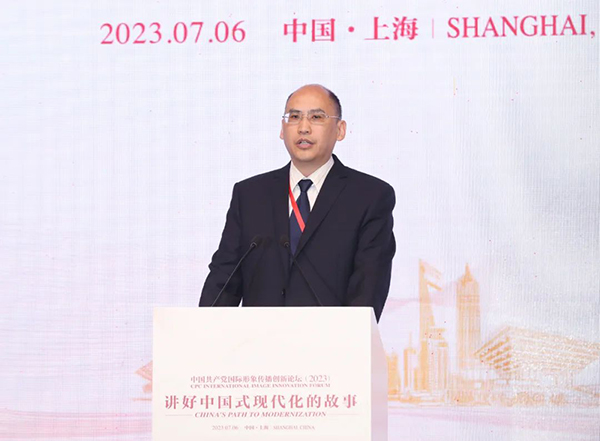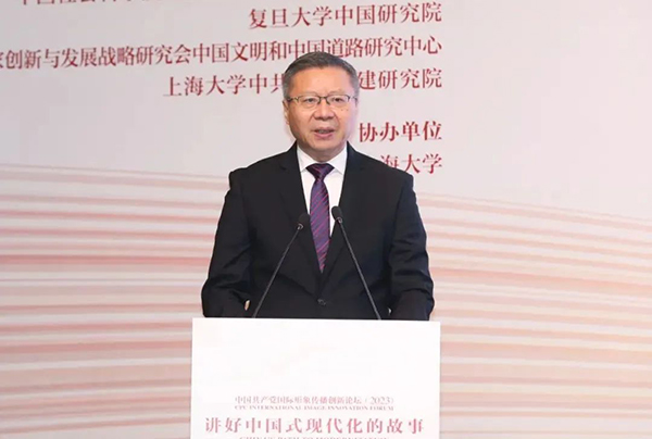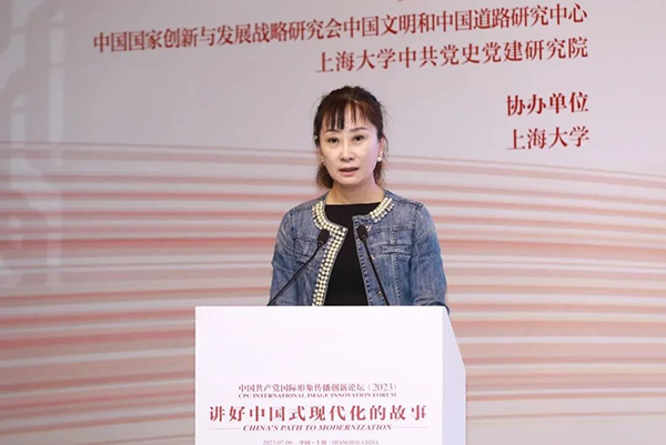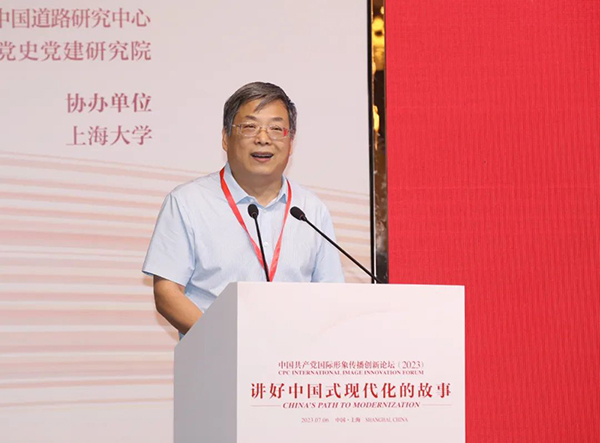 7月6日,中國共產黨國際形象傳播創新論壇(2023)在上海舉行。論壇由中國外文局、中央社會主義學院主辦,中國外文局所屬中國對外書刊出版發行中心(國際傳播發展中心)、中共中央對外聯絡部信息傳播局、中國浦東幹部學院中國特色社會主義研究院、中國社會科學院習近平生態文明思想研究中心、複旦大學中國研究院、中國國家創新與發展戰略研究會中國文明和中國道路研究中心、上海大學中共黨史黨建研究院承辦,上海大學協辦。來自中央部委、地方省市、國際組織、高等院校、智庫、媒體、企業等的中外嘉賓以及國際青年代表近200人圍繞“講好中國式現代化的故事”主題深入交流研討。