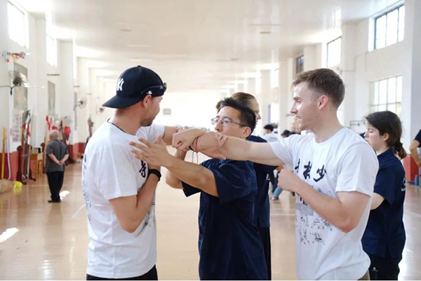 在(zai)練(lian)功(gong)房(fang),教(jiao)練(lian)們(men)進(jin)行(xing)了(le)精(jing)彩(cai)的(de)表(biao)演(yan)。在(zai)太(tai)極(ji)和(he)螳(tang)螂(lang)拳(quan)的(de)展(zhan)示(shi)中(zhong),每(mei)個(ge)動(dong)作(zuo)都(dou)充(chong)滿(man)了(le)柔(rou)和(he)而(er)均(jun)衡(heng)的(de)力(li)量(liang),教(jiao)練(lian)獨(du)特(te)的(de)身(shen)法(fa)和(he)流(liu)暢(chang)的(de)動(dong)作(zuo)讓(rang)外(wai)籍(ji)青(qing)年(nian)們(men)讚(zan)歎(tan)不(bu)已(yi)。詠(yong)春(chun)拳(quan)快(kuai)速(su)連(lian)貫(guan)的(de)技(ji)法(fa)以(yi)及(ji)精(jing)準(zhun)的(de)拳(quan)腳(jiao)配(pei)合(he),每(mei)個(ge)招(zhao)式(shi)都(dou)流(liu)暢(chang)有(you)力(li),凝(ning)聚(ju)著(zhe)詠(yong)春(chun)拳(quan)特(te)有(you)的(de)爆(bao)發(fa)力(li)和(he)實(shi)用(yong)性(xing)。在(zai)交(jiao)流(liu)中(zhong)外(wai)籍(ji)青(qing)年(nian)了(le)解(jie)到(dao),傳(chuan)統(tong)武(wu)術(shu)精(jing)神(shen)是(shi)儒(ru)家(jia)思(si)想(xiang)的(de)體(ti)現(xian),也(ye)是(shi)自(zi)強(qiang)不(bu)息(xi)的(de)民(min)族(zu)精(jing)神(shen)的(de)體(ti)現(xian)。“這真的太酷了!我要拜師!”來自智利的新聞編輯大衛在觀賞完表演後激動地說道。
