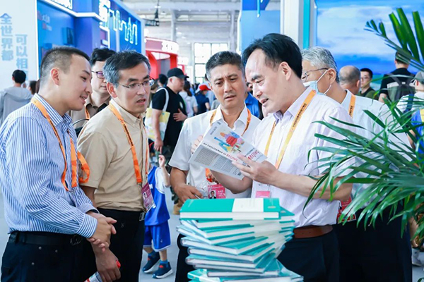 9月2日,2023年中國國際服務貿易交易會(服貿會)在北京開幕。9月3日下午,中共中央政治局委員、北京市委書記尹力,市長殷勇以及市委、市政府有關負責同誌到中國外文局展台視察,副局長陸彩榮、高岸明介紹了中國外文局參展情況。中國外文局副局長劉大為開幕當日到中國外文局展區指導參展工作。