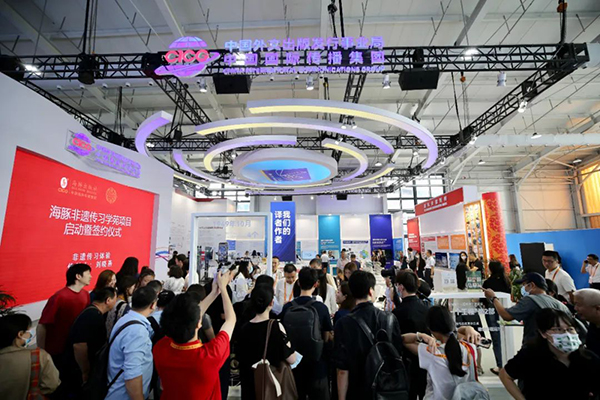 中國外文局展區前觀眾熱情互動
