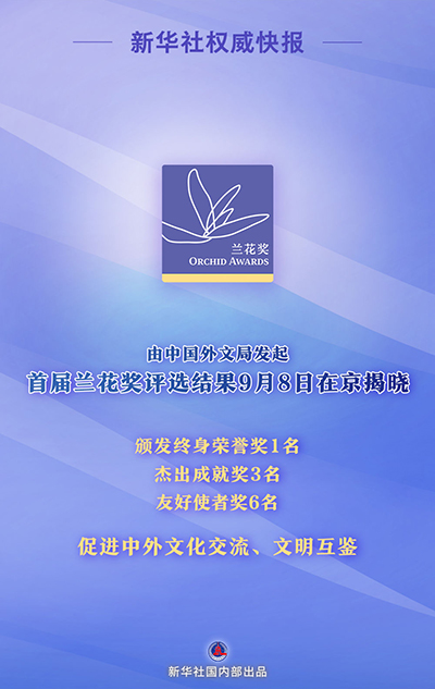 首屆蘭花獎頒獎典禮9月8日在京舉行,頒發終身榮譽獎1名,傑出成就獎3名,友好使者獎6名。