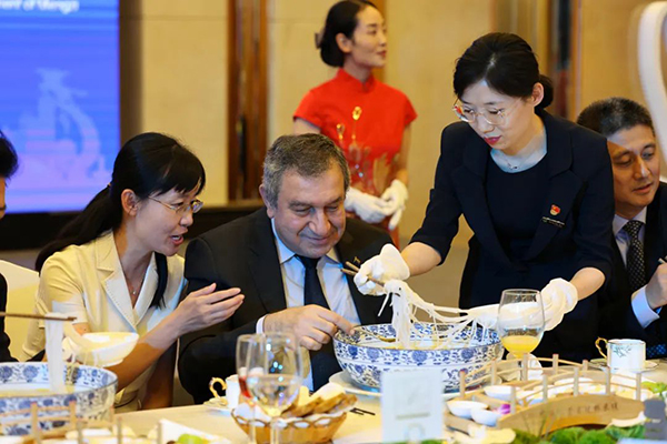 雲南省紅河哈尼族彝族自治州州委副書記、州委宣傳部部長應亥宗表示,蒙自作為紅河州州府所在地,是過橋米線的發源地,素有“中國過橋米線之鄉”和“國際(過橋米線)美食名城”的美譽。希望借助蘭花獎這個國際文化交流互鑒平台、通過“蘭花之夜·橋宴”,把中國西南邊陲的傳統文化展示給各國貴賓和好朋友們,進一步加深友誼,開辟多樣性文化交流互鑒的新局麵。