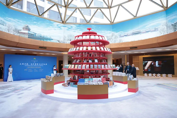 論壇設置圖書展和視頻展。圖書展展台以天壇為主形象,展示了領袖著作、文化名著、北京主題等多語種圖書。短視頻展播放以文化為主題的世界故事,生動展現最新最美最好的中國形象和首都麵貌。