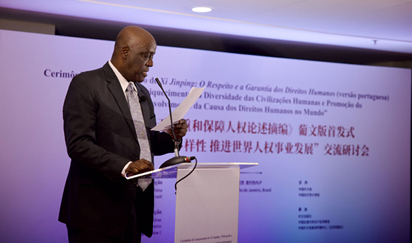 近日,由中國外文局、中國駐巴西大使館主辦,外文出版社、中國駐裏約熱內盧總領事館、中國外文局美洲傳播中心(北京周報社)承辦的《習近平關於尊重和保障人權論述摘編》葡文版首發式暨“豐富人類文明多樣性 推進世界人權事業發展”交流研討會在巴西裏約熱內盧舉行。