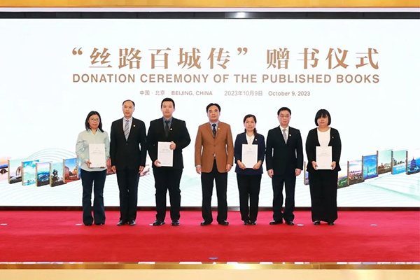 與會領導嘉賓向國家圖書館、首都圖書館、中聯部當代世界研究中心、中國人民大學絲路學院等單位贈書