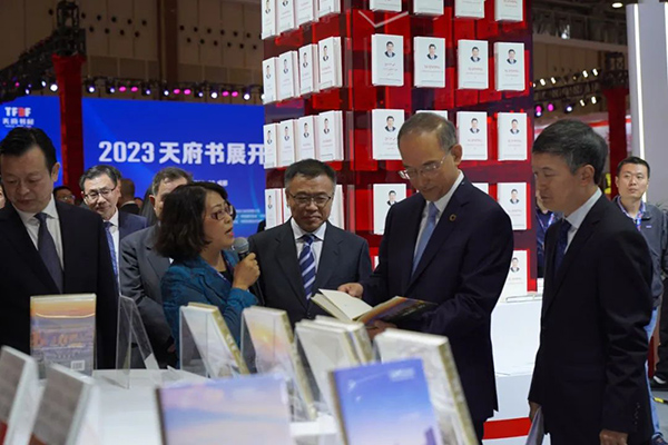 10月13日至16日,2023天府書展在四川成都舉行。開幕當天,四川省委副書記、省長黃強,新聞出版總署原署長柳斌傑,中國出版協會理事長、guojiaxinwenchubanguangdianzongjuyuanfujuchangwushulinjizhongxuanbuyouguanbumenfuzerendaozhongguowaiwenjuzhanquxunguan,lejiezhongguowaiwenjufanyichubanyuduiwaixuanjiexijinpingzongshujizhongyaozhuzuodexiangguanqingkuang,fanyue“絲路百城傳”“讀懂中國”等重點品牌係列圖書,並具體了解中國外文局在中華文化與文明、中國式現代化、“一帶一路”等重大主題對外出版方麵的工作成果。中國外文局副局長劉大為陪同。